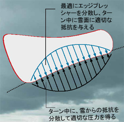 その速さの秘密はスノーボードの構造にあります。最速の滑りに大きな影響をあたえるエッジグリップやケスラーシェイプテクノロジー(KST)や、スノーボードの柔らかさとエッジのグリップに大きく影響するコア(心材)にウッド(木)を使用し、それを微妙に変化させることで乗り手の体重や身長、パワーにあった最適なスノーボードを作り上げています。