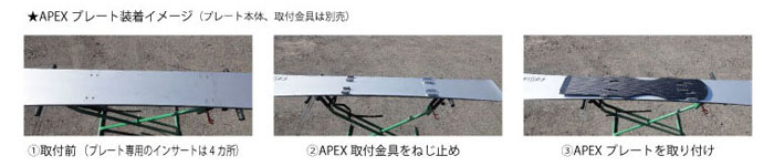 APEXプレート専用のインサートを装備し、プレート装着状態でその効果を最大限に生かすために最適化された特別仕様で、APEXプレートによるノーズの過度の切れ込みやボードのたわみすぎを専用のフレックス(不等圧)にて、最適化。